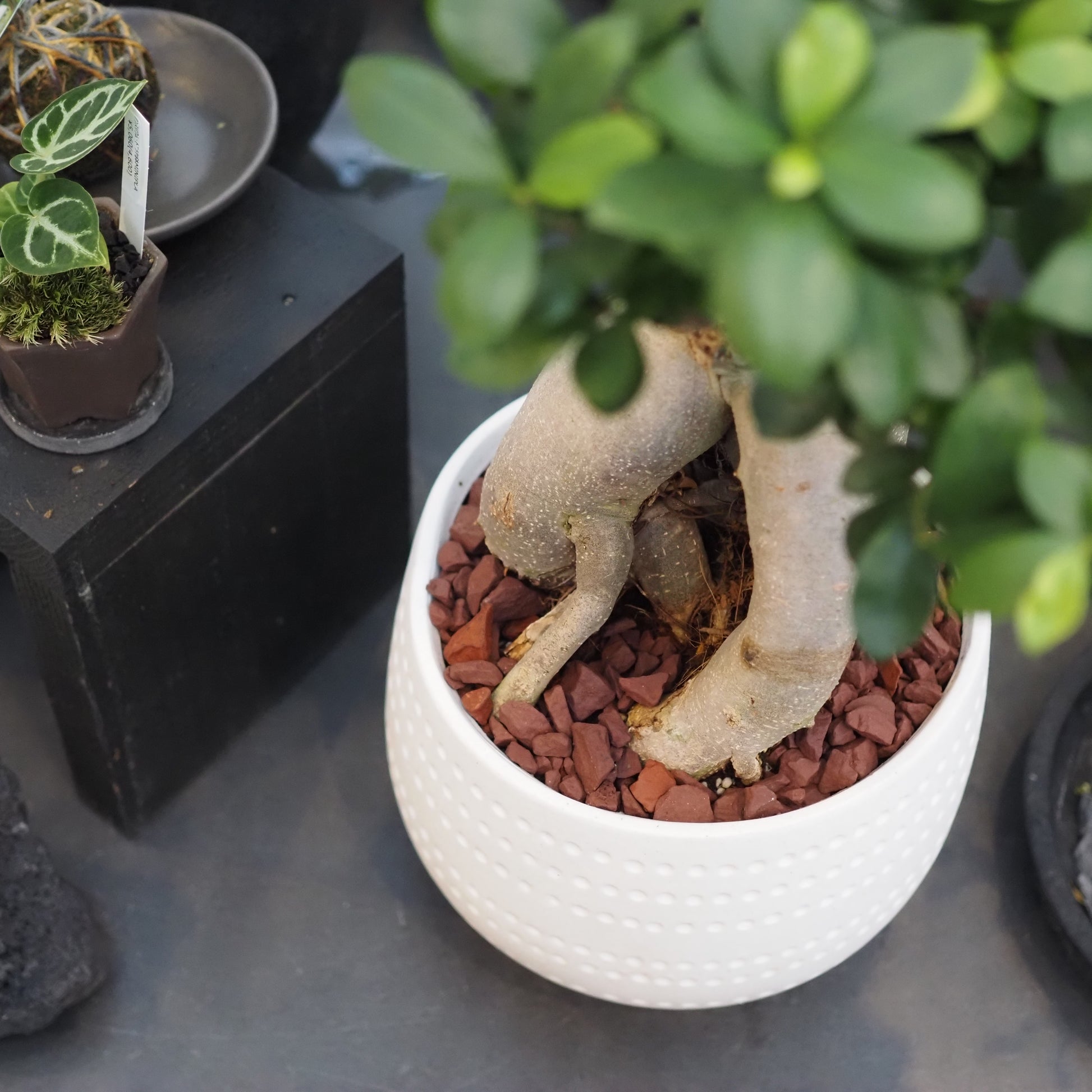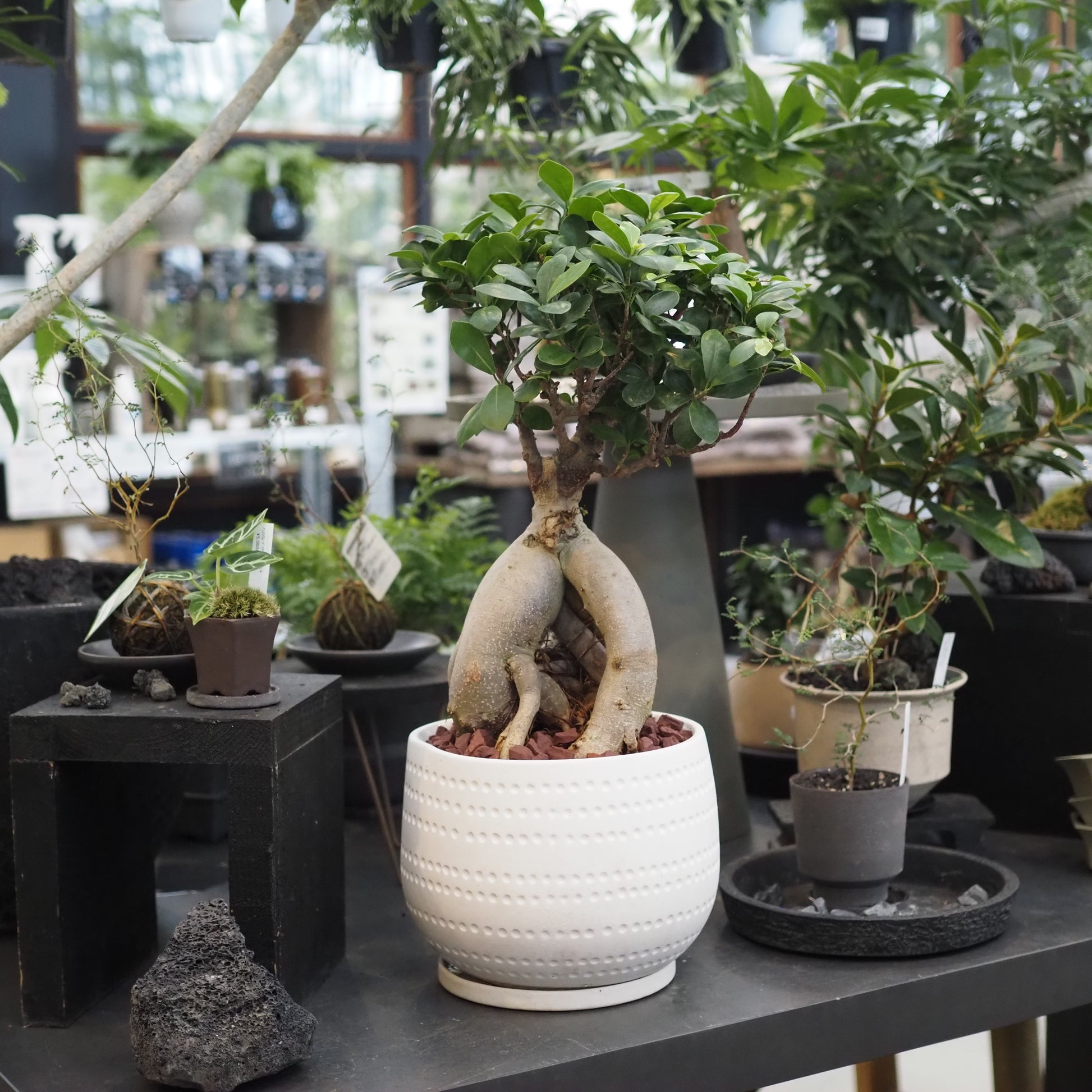 丸みのある幹が特徴的で丈夫で育てやすく、『幸せを呼ぶ木』としても人気のガジュマル。