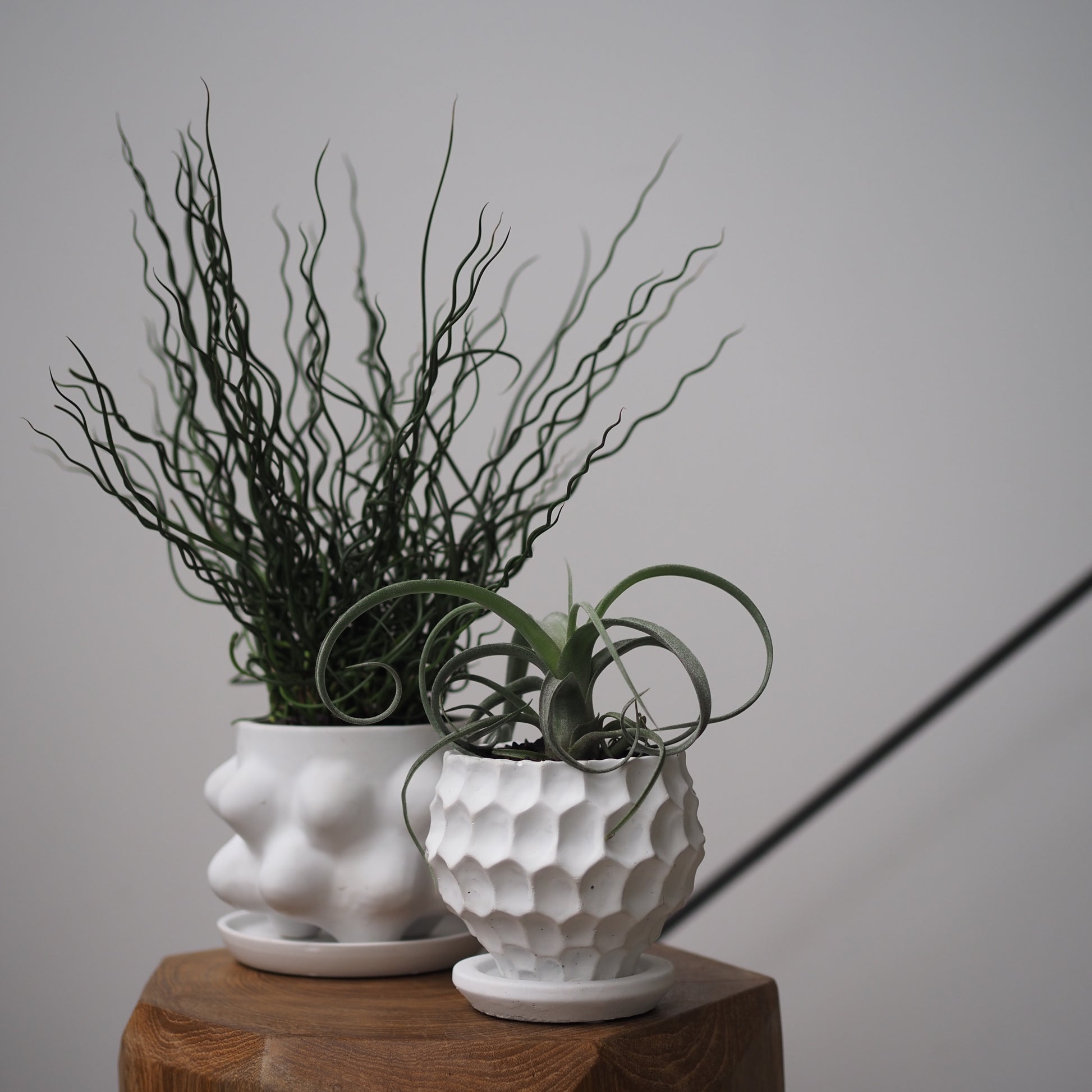 個性的な形の鉢と合わせてモダンでスタイリッシュに仕立てました。
