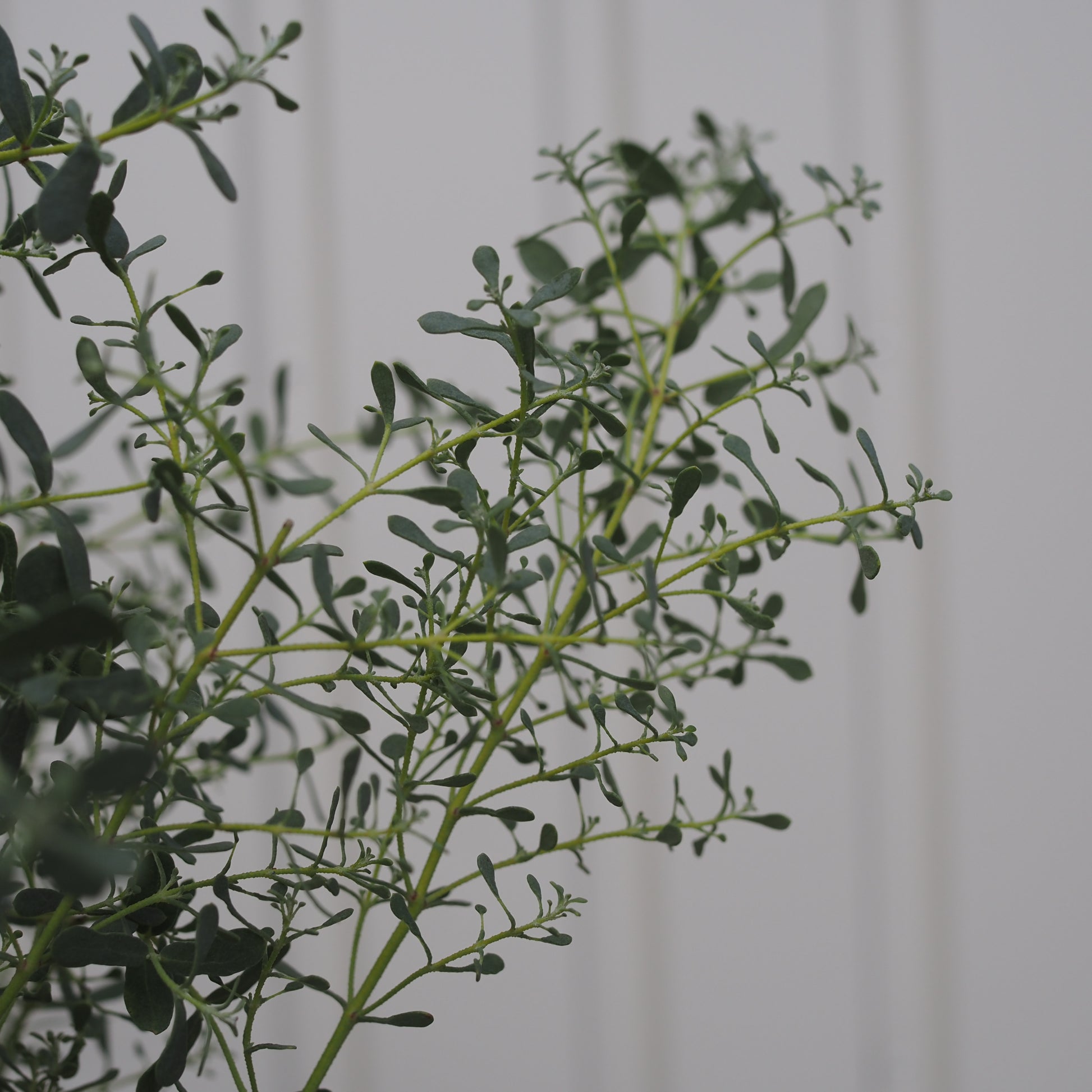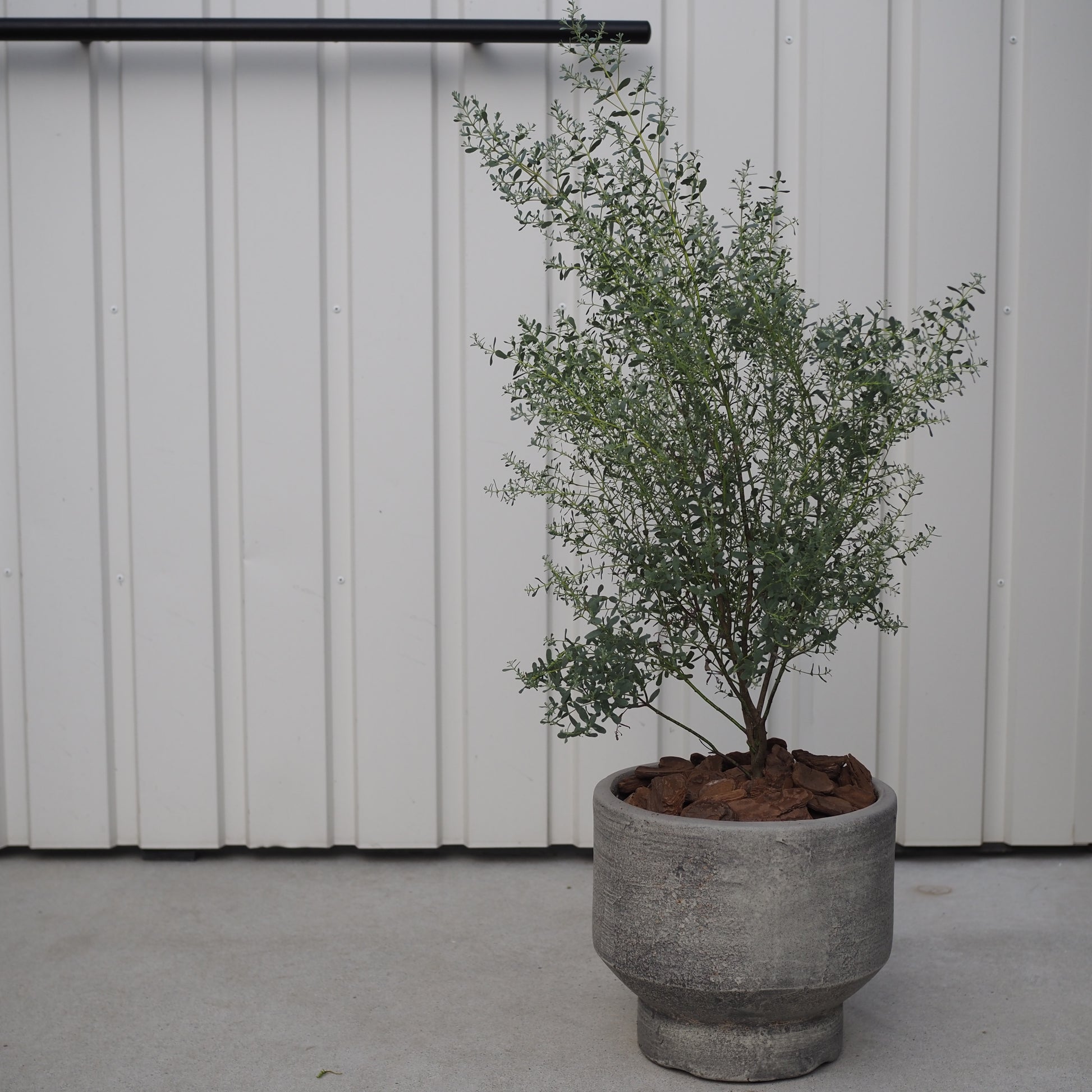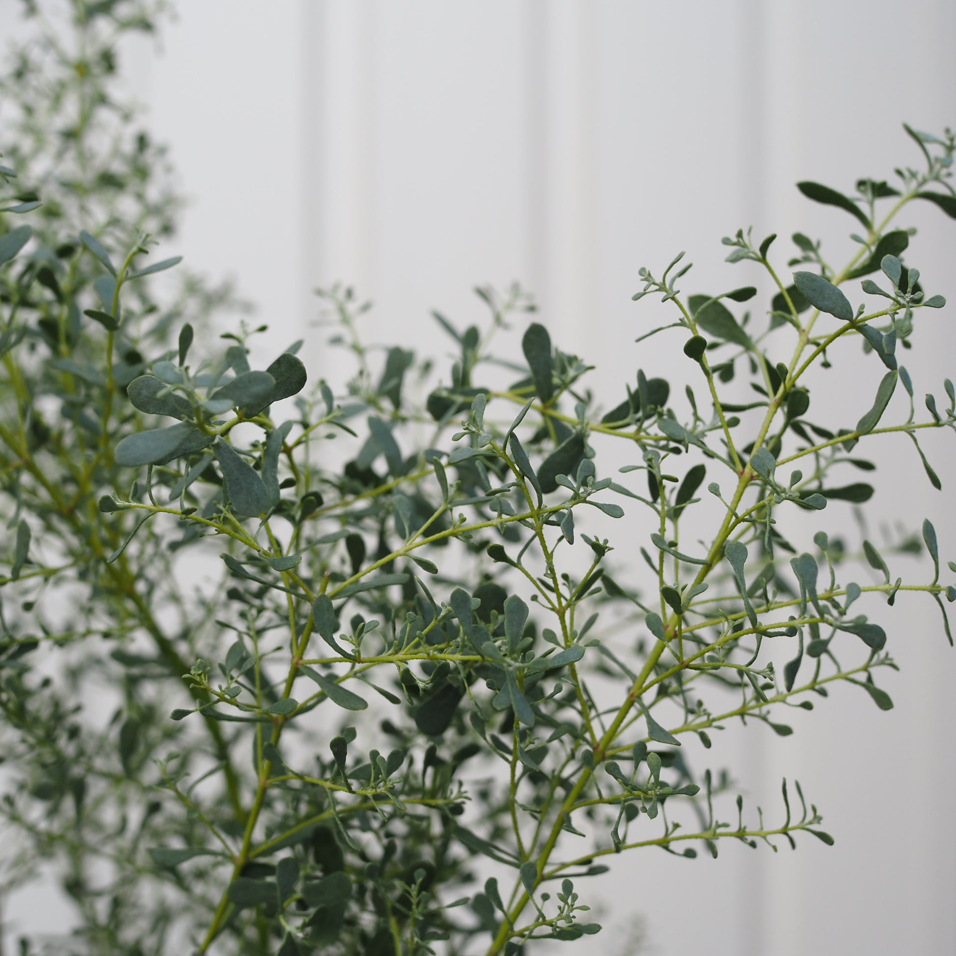 ユーカリフランスブルーの葉は小さな卵形で、青みがかったシルバーグリーンが魅力です。
